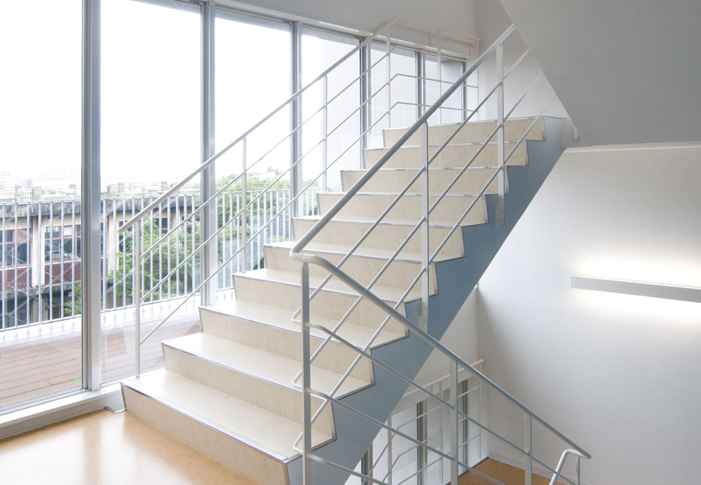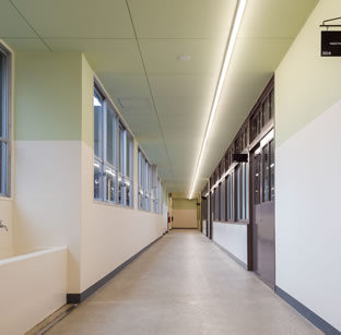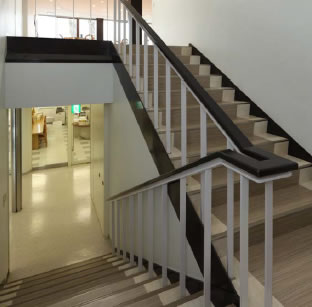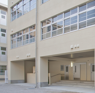 RC造4F(東棟)、RC造3F(渡り廊下)、S造4F(屋外階段)